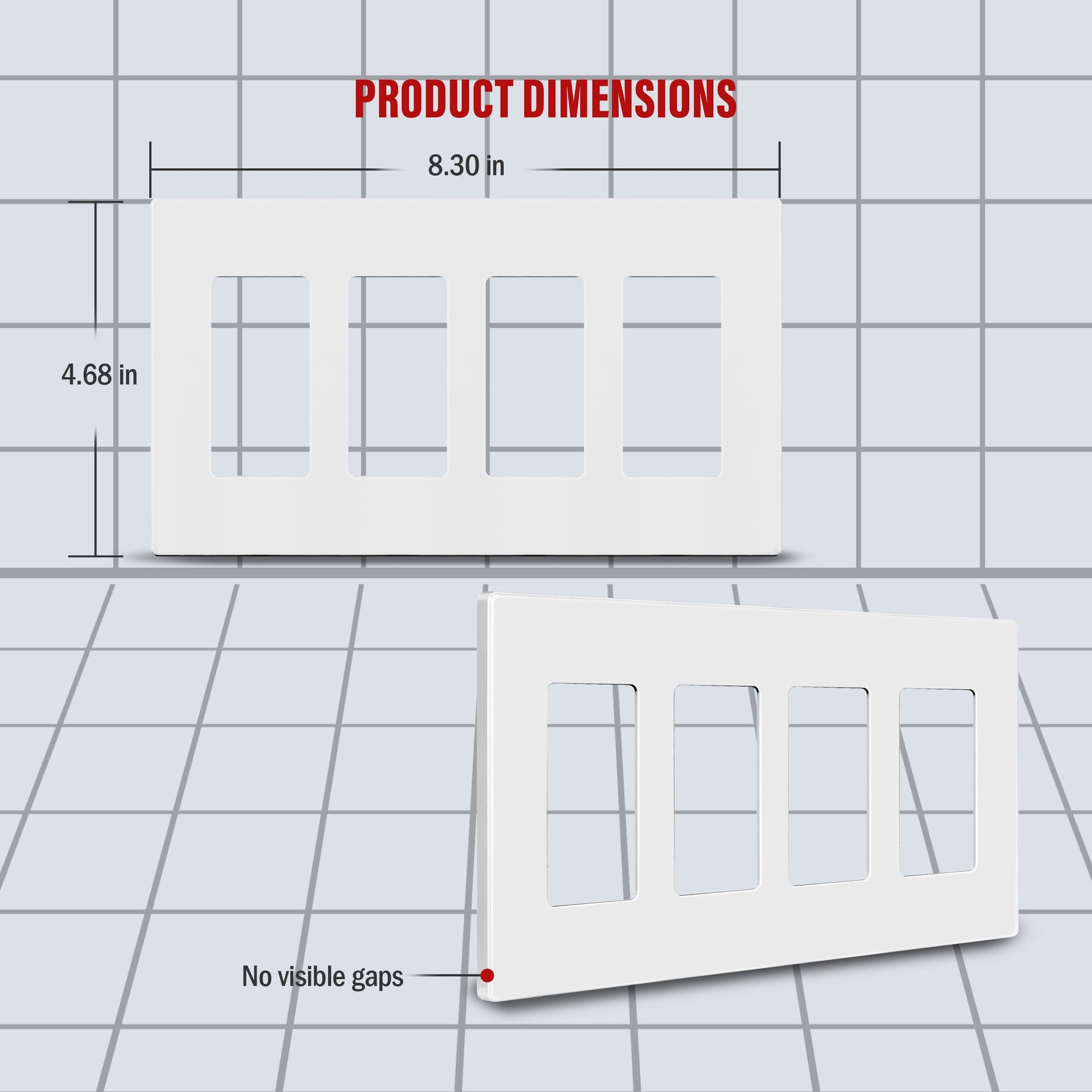 Screwless Decorator Four-Gang Wall Plate Glossy White Finish