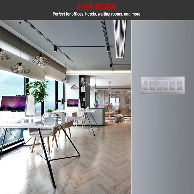 Screwless Decorator Six-Gang Wall Plate Silver Finish