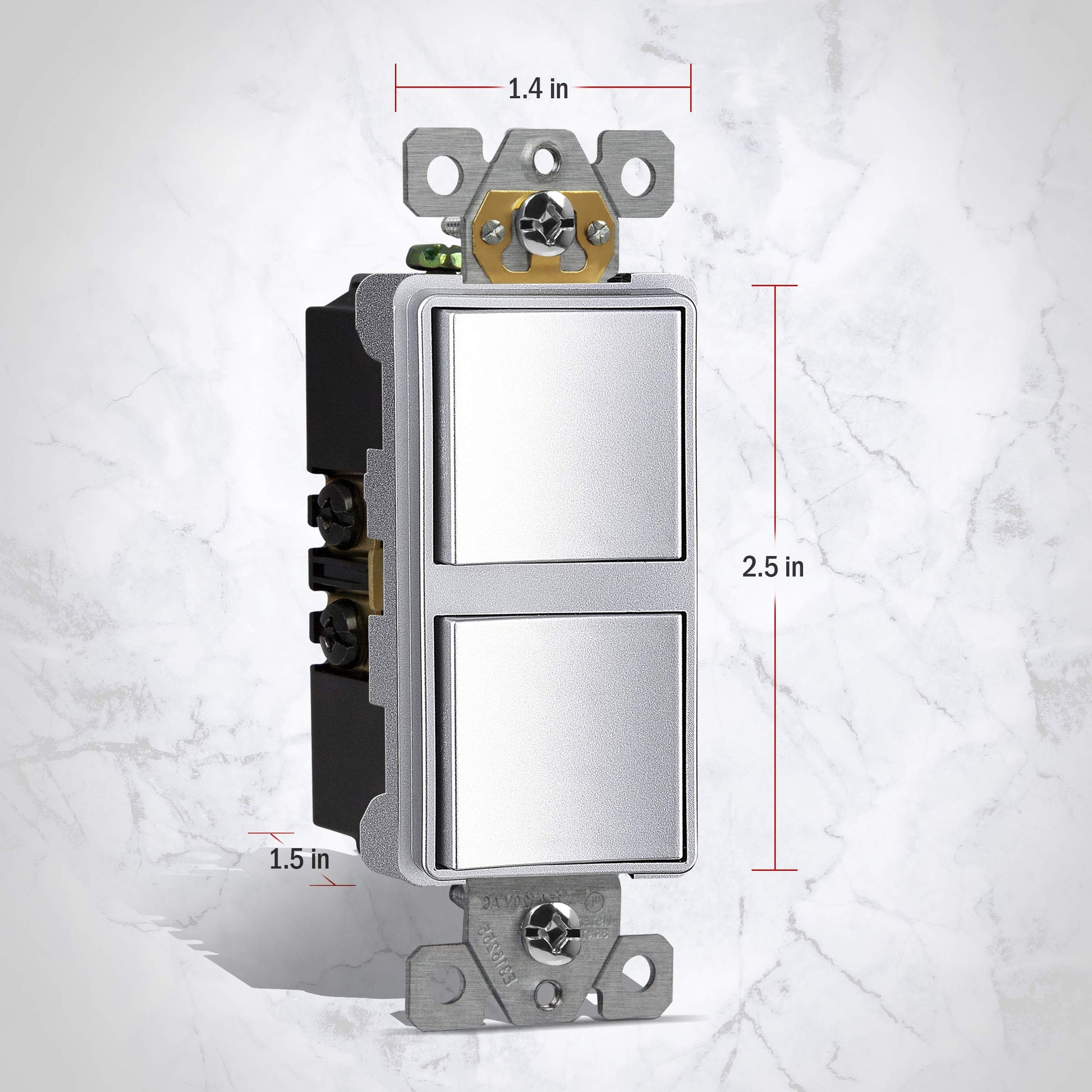 The ENERLITES 62834 switch makes installation quick and simple with its versatile design. This device features two switches that control two separate fixtures in a single wall box. The impact resistant thermoplastic body is built strong to endure years of use as well as being resistant to a wide temperature range. You can transform the look of your home and increase its resale value with these modern switches.